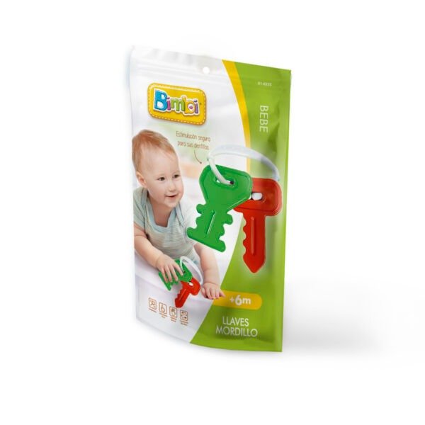l Bimbi Llaves Mordillo es el compañero perfecto para tu bebé en su etapa de dentición. Este mordillo en forma de llave es fácil de agarrar por las pequeñas manos de tu hijo, proporcionando alivio y diversión al mismo tiempo.